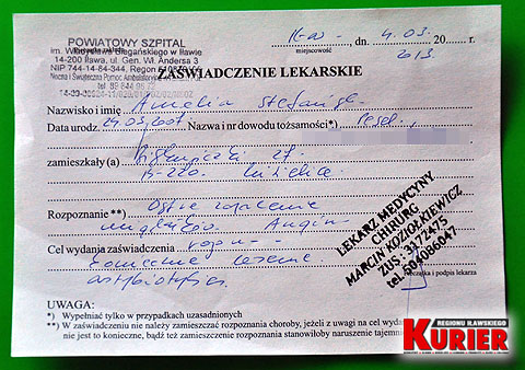 – W trakcie badania okazało się, że Amelia ma anginę ropną i ostre zapalenie migdałów. Pan doktor zapytał, dlaczego dopiero teraz się zgłosiłam, więc opowiedziałam mu całą historię, ale o pisemnym oświadczeniu na wszelki wypadek nie wspomniałam. Bałam się reakcji – mówi pani Sylwia. – Lekarz powiedział mi, że nieprzyjęcie dziecka jest niedopuszczalne i szkoda, że nie mam tego na piśmie. Wtedy powiedziałam mu o oświadczeniu podpisanym przez lekarza z Kisielic. Był w szoku i powiedział, że bardzo dobrze zrobiłam, a ten lekarz „sam sobie strzelił gola”.